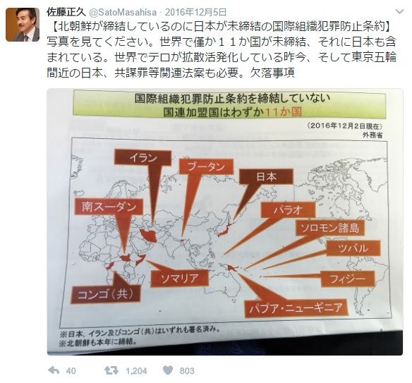 共謀罪に反対してる奴は日本を孤立化させたいのかと。